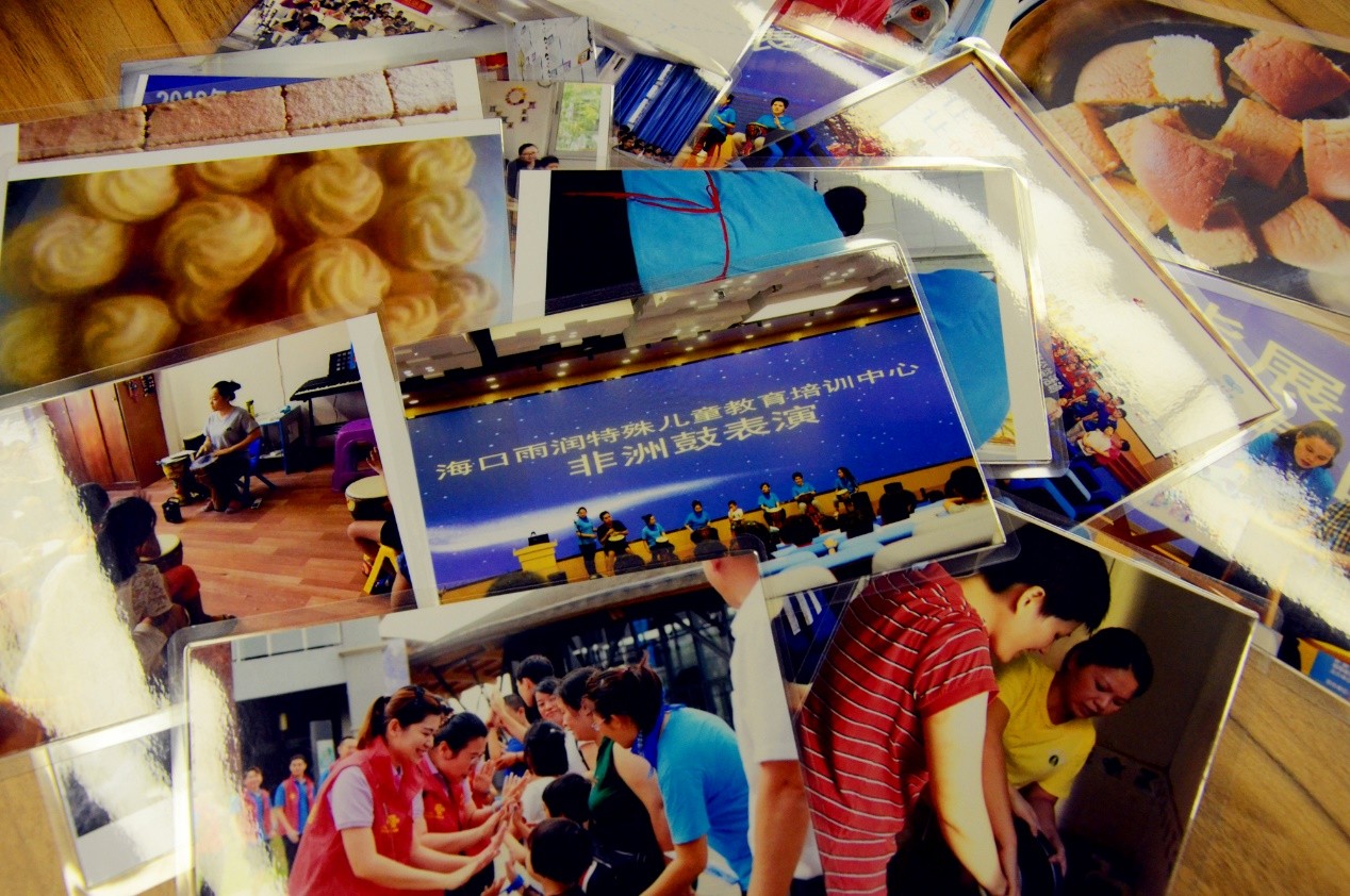 寫信的人是海口雨潤特殊兒童教育培訓(xùn)中心校長吳美林,禮物則是由學校的自閉癥兒童及智力發(fā)育遲緩兒童親手制作,一同寄過來的還有一沓厚厚的照片,那是學校孩子們接受教育和康復(fù)訓(xùn)練的活動掠影。