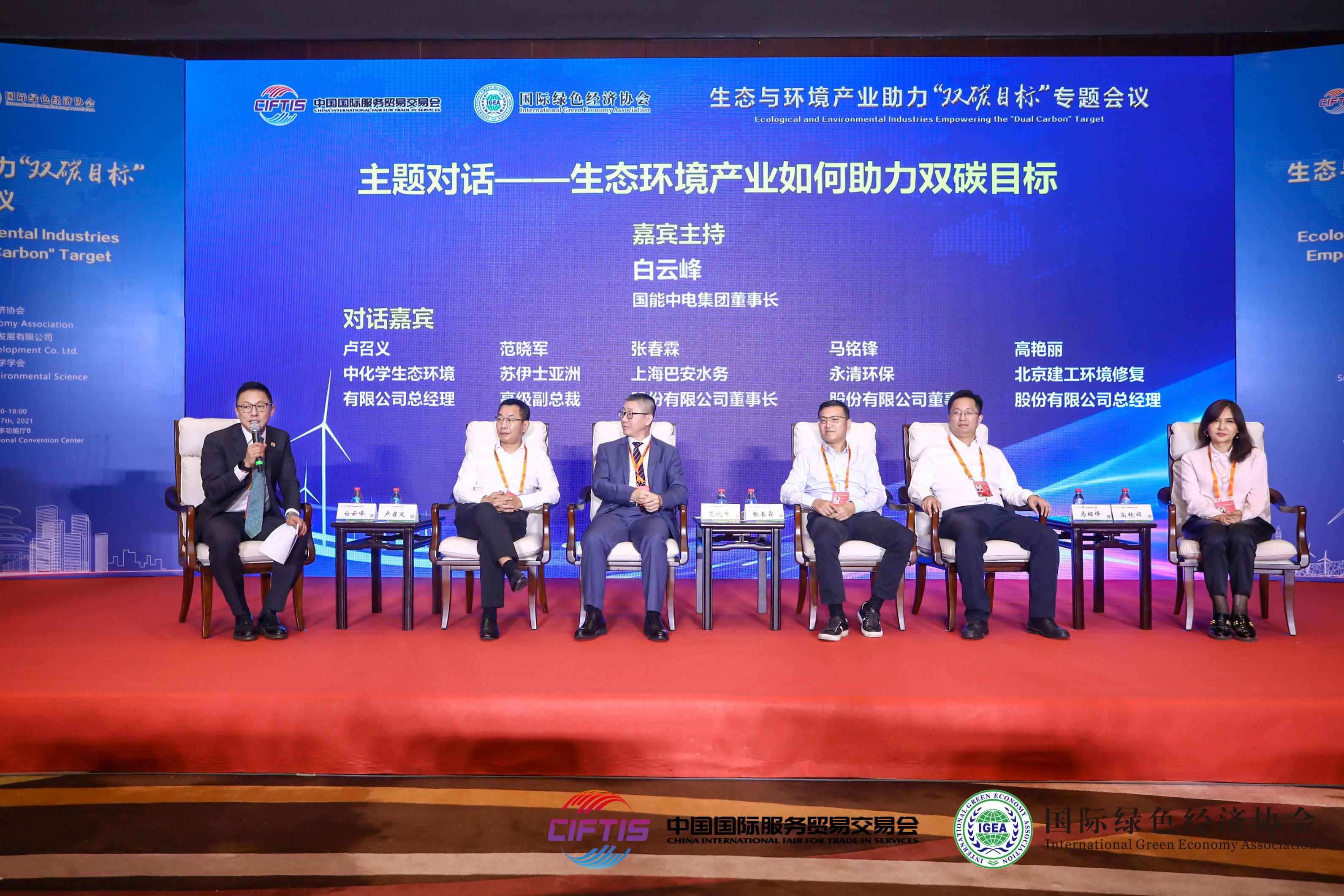 會上,白云峰作為特邀嘉賓主持“生態環境產業如何助力雙碳目標”主題對話活動,與來自新能源、環境修復、污水處理等領域的專家就生態環境產業如何助力碳中和目標的實現展開高層對話。